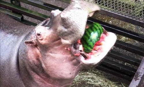 想象一只大块头的河马,穿着它那厚厚的皮肤外套,摇摇摆摆地走向一个巨大的西瓜。这场景本身就够搞笑的了,但更让人捧腹的是它吃瓜的样子。河马那长长的嘴巴,一开一合,仿佛在说:“这瓜不错,来吧,让我尝尝!”
